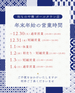 年末年始 営業時間のお知らせ